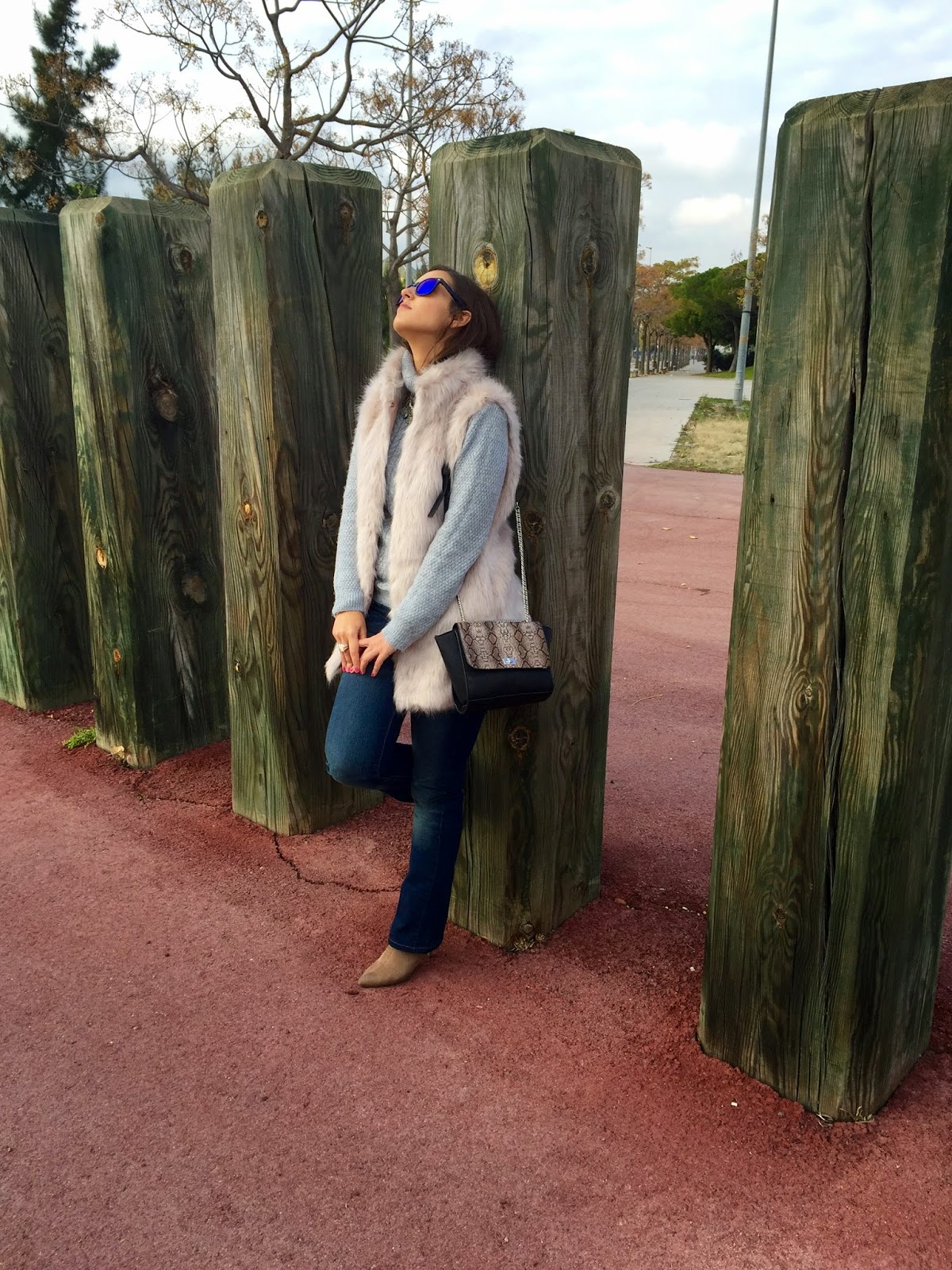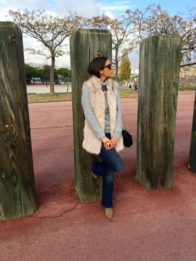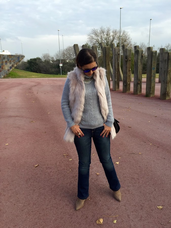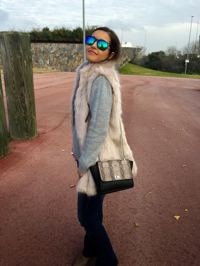 Good night loves! Last post of the week with a casual look. Lately I wore a lot of clothes in neutral colors, when my favourite colour for the winter used to be black. In the outfit of the day, I wore jeans, grey sweater and my new furry vest of Bershka. The accessories of the outfit were a snake print bag and beige boots. A comfy outfit that it"s perfect to go shopping.