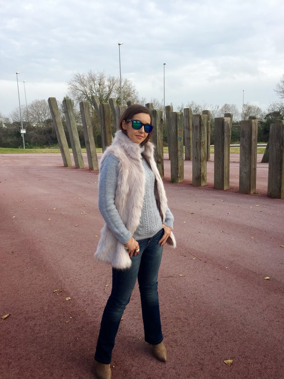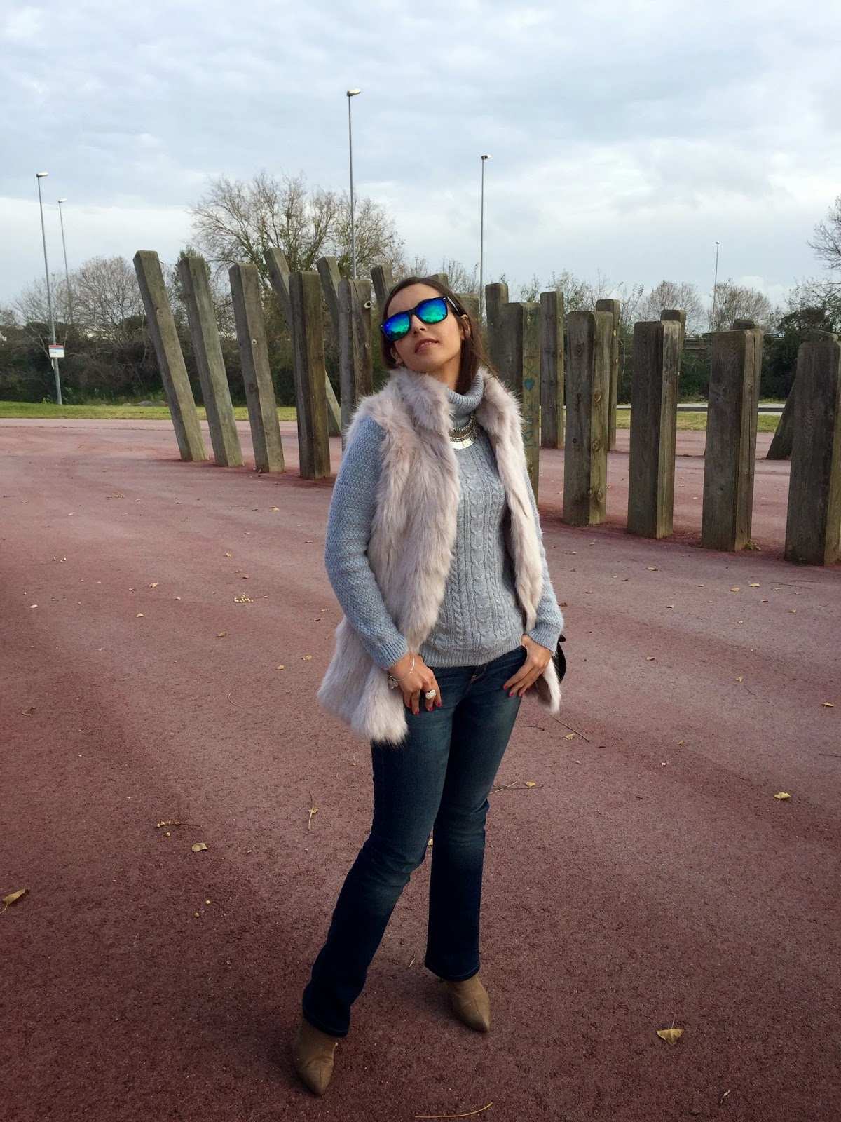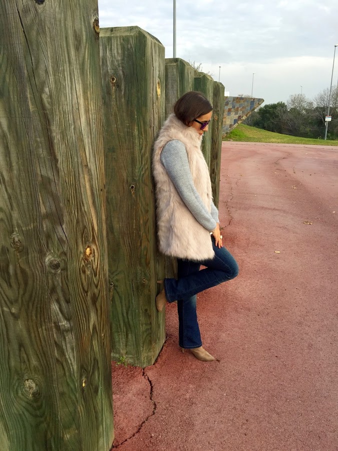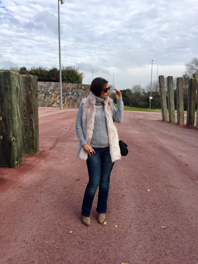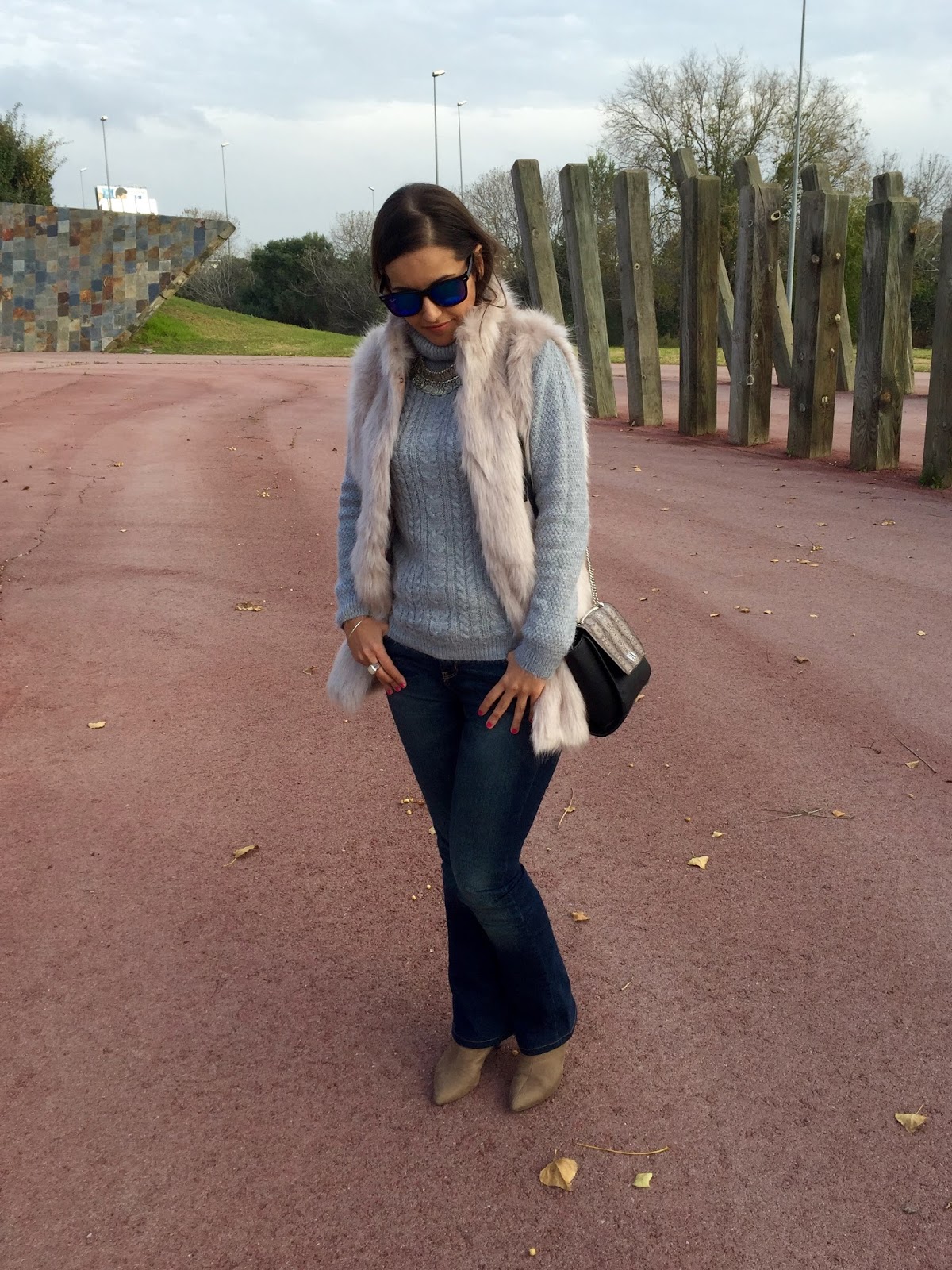 !Buenas noches amores! Último post de la semana con un look casual. Últimamente me ha dado por los colores claritos, cuando siempre ha sido el negro mi color predilecto para el invierno. En look de hoy, llevo jeans, jersey gris y mi nuevo chaleco de pelo Bershka. Como accesorios, mi nuevo bolso con estampado de serpiente de Stradivarius y mis botas beige. Un look cómodo, perfecto para una tarde de compras.