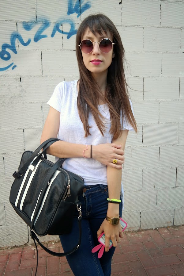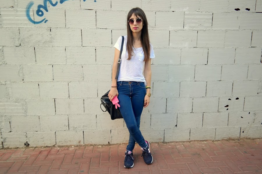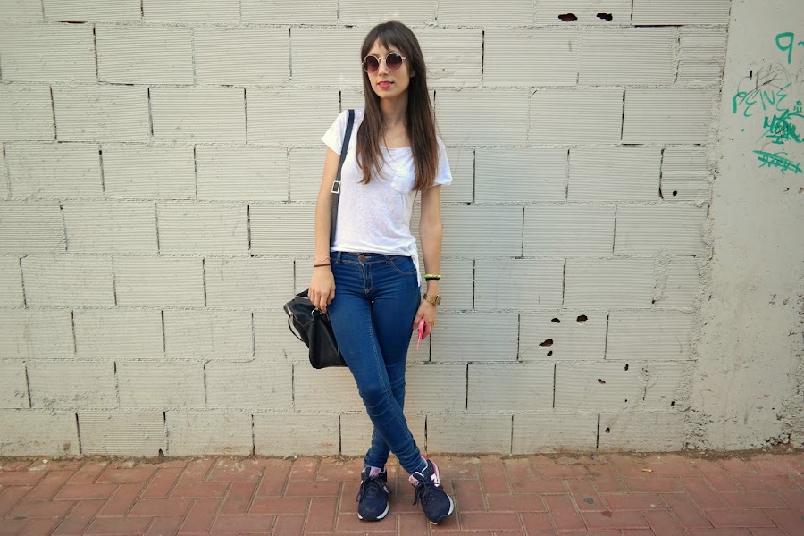 Pero vamos a lo que interesa ¿no? El look de hoy es sencillo, pero me gusta la combinación de las gafas redondas con new balance. Además, esa camiseta básica con los dos nudos a los lados queda muy bien. ¿Os gusta? Las gafas, que me compré en mi último viaje a Madrid en Topshop, creo que les voy a dar mucho uso este verano porque según he visto están de plena moda. Muchas gracias por los comentarios y las visitas, que cada vez son más. ¡Un beso!