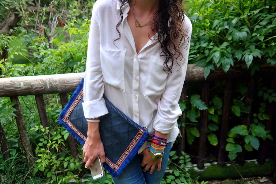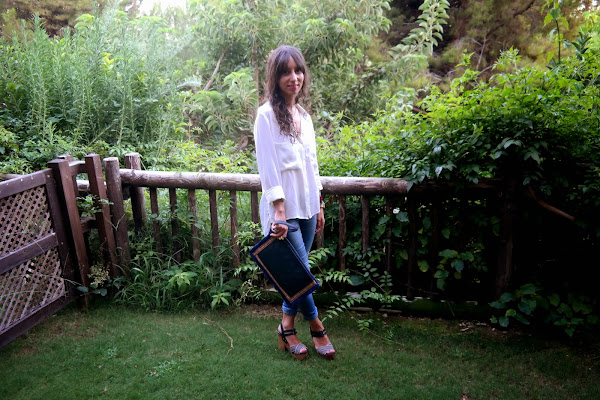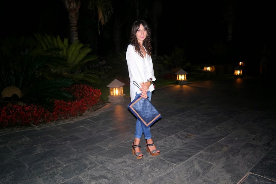 Already it is Wednesday! So since it is a tradition in this epoch, I took advantage of this bridge in Murcia, before beginning with my routine, to be going to a village of Jaen to visit my grandparents and, hereby pudé to be useful to do photos because this site has very good corners. At the moment I leave you with another small corner of these past vacations and they are these photos that I did in the garden of the room of hotel to which I was this summer with my family in Benidorm. Already I spoke to you about the hotel, but already I will teach you hereinafter photos since I am preparing a post with a good summary of moments. In end, the look of these photos is simple enough, very typical in my, but it had many desires of releasing this new clutch that I bought in a local shop where veraneo and that I am charmed with me, so not to fail he chooses for white shirt and jeans. This one is a combination SOS for any occasion. What does seem to you? I wait for your commentaries and hope also that you enjoy of this weekend. A kiss!
