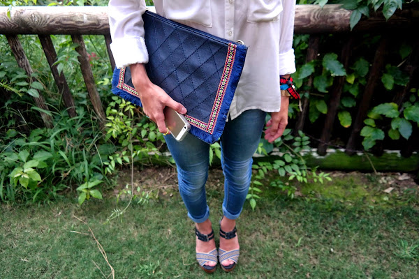 ¡Ya es Miércoles! Pues como es tradición por esta época, aproveché este puente en Murcia, antes de empezar con mi rutina, para ir a un pueblo de Jaén a visitar a mis abuelos y, de esta manera pudé aprovechar para hacer fotos porque ese sitio tiene muy buenos rincones. De momento os dejo con otro pequeño rincón de estas pasadas vacaciones y son estas fotos que hice en el jardín de la habitación de hotel a la que fui este verano con mi familia en Benidorm. Ya os hablé del hotel, pero ya os enseñaré más adelante fotos ya que estoy preparando un post con una buena recopilación de momentos. En fin, el look de estas fotos es bastante sencillo, muy típico en mi, pero tenía muchas ganas de estrenar ese clutch nuevo que compré en una tienda local donde veraneo y que me encanto, así que para no fallar opte por camisa blanca y jeans. Esta es una combinación SOS para cualquier ocasión. ¿Qué os parece? Bueno, espero vuestros comentarios y espero también que disfrutéis de este fin de semana. ¡Un beso!
