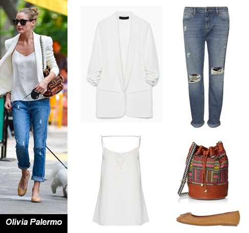 Crepe blazer de ZARA: Una americana con manga remangada en tono crudo y cuello tipo smoking. Ideal para dar un aire elegante y chic a cualquier look primaveral como este sencillo estilismo de Olivia Palermo.