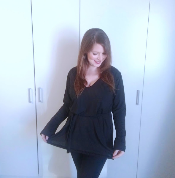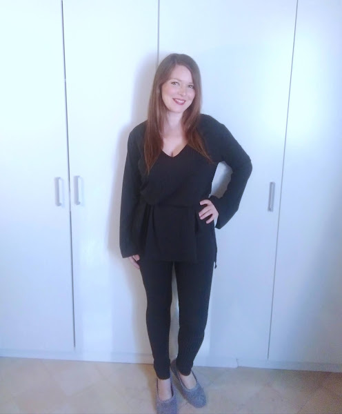 El conjunto negro es también un acierto, ligero, cómodo y "todoterreno". Es similar a conjuntos anteriores que ya pedí, pero ninguno de ellos es exactamente igual, tienen diferencias en el acabado del cuello, en el cinturón, en el largo del top o en el acabado y ancho del pantalón, por lo que son bastante versátiles tanto dentro como fuera de casa, y por supuesto combinables entre ellos.