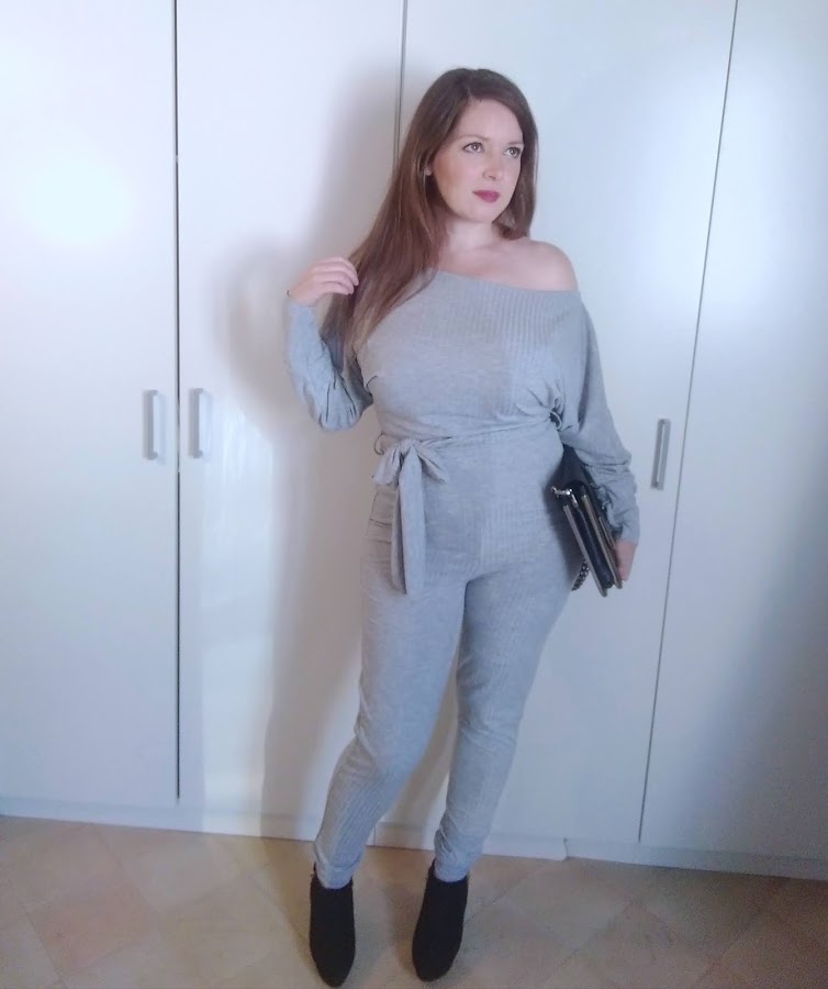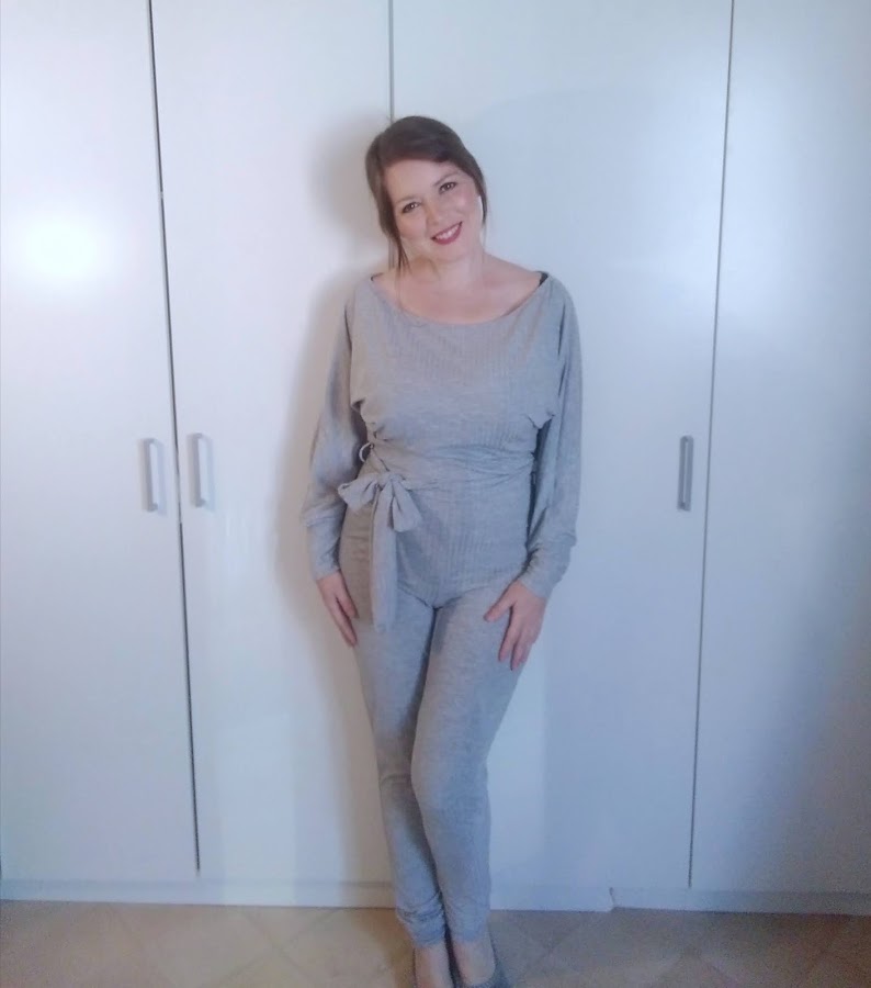 Lo pedí en gris claro por no abusar del negro, pero no me importaría hacerme con otro en un tono diferente. El escote es amplio, permite llevarlo con un hombro descubierto y el cinturón se puede quitar o cambiarlo por otro que vista más para llevarlo como opción de calle, y en este caso, queda genial con gabardina o abrigo 3/4 o largo. La manga japonesa, acabada en puño largo y ajustado, contrarresta lo ceñido del pantalón y sienta muy bien.
