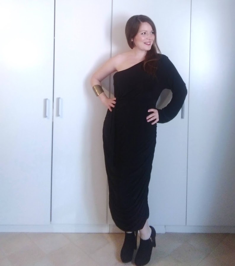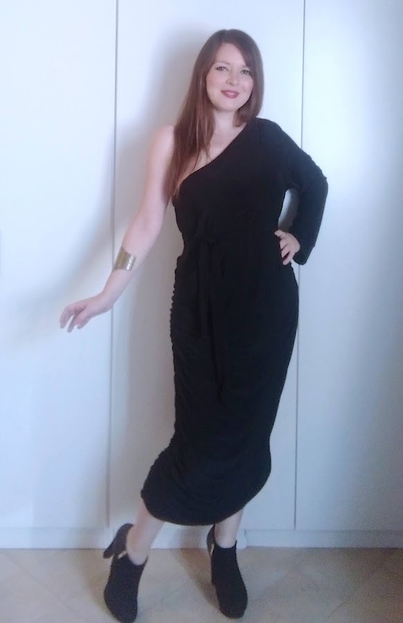¡Es muy probable que esta sea mi opción para la cena familiar de Navidad! Ahora mismo mi cuerpo no admite ir muy ajustado aún, así que un vestido tan confortable, en negro y de una talla superior, es la mejor opción. Y para restarle sobriedad, aportaré algún que otro complemento metálico más vistoso.