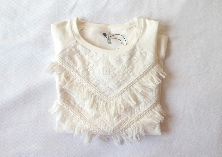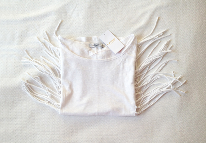 Camiseta con flecos de Pull&Bear (1.99???). Por ese precio no podía dejarla ahí cuando nos proponen los mismo para la nueva temporada por 10 veces ese precio ;)