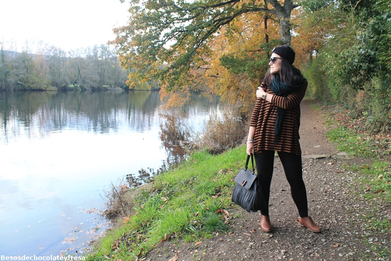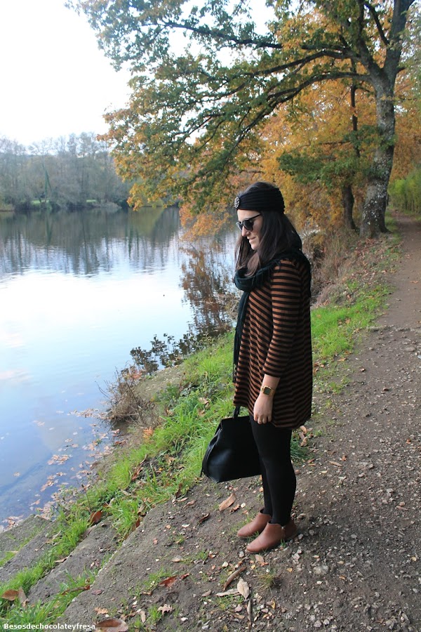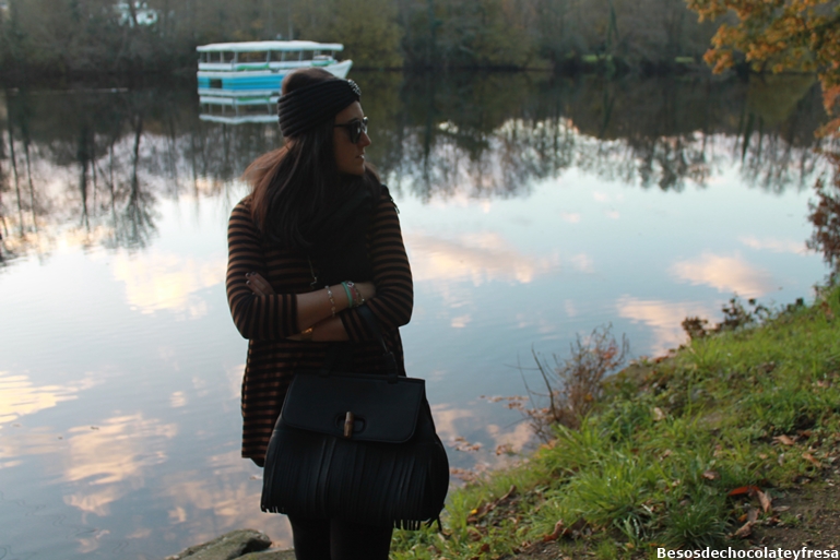 Hoy os traigo un look en tonos negros y marrones, cuyas fotos hicimos el fin de semana pasado aprovechando que el sol hacía acto de presencia y decidimos ir dar un paseo a lo largo del río con un pequeño catamarán al fondo y el sol poniéndose.