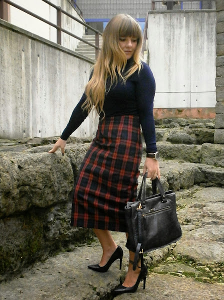 La falda que llevo hoy mezcla la tendencia new look y el tartán.....dos en uno!!!