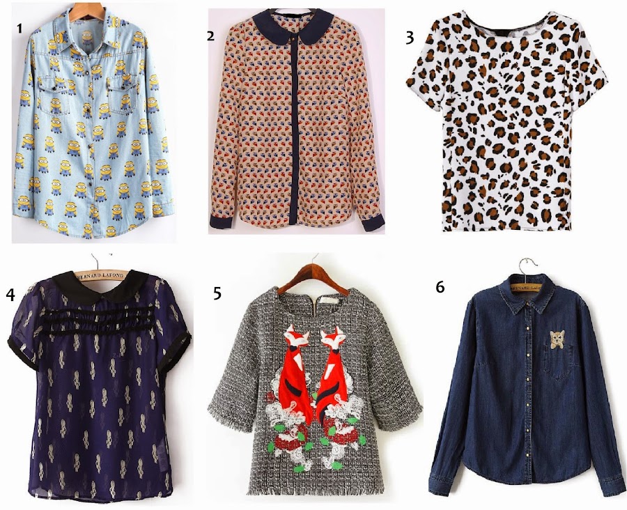 1- Camisa minions AQUÍ, 2- Blusa búhos AQUÍ, 3- Blusa estampado leopardo AQUÍ, 4- Blusa navy AQUÍ, 5- Top zorros AQUÍ, 6- Camisa gato AQUÍ