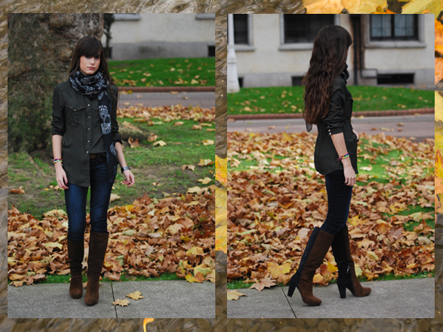 Chaqueta/Jacket: Zara | Pañuelo/Scarf: Zara | Camisa/Shirt: Zara | Anillo/Ring: Aristocrazy Vaqueros/Jeans: Bershka | Botas/Boots: Doralatina vía Dream Shoes