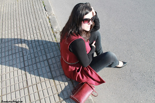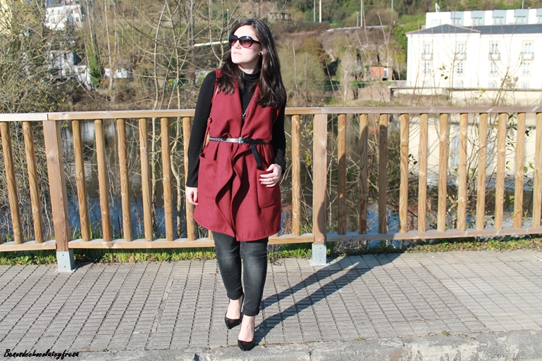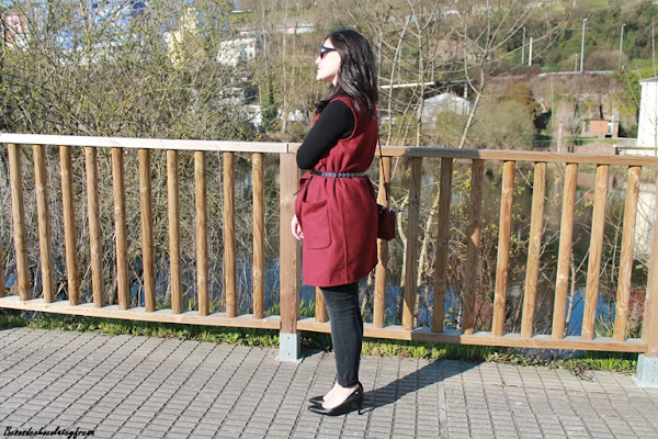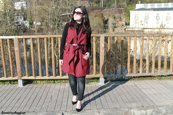 Hola!!! ¿Qué tal va la semana? Ya metidos en la rutina verdad? Hoy os propongo un look en tonos burdeos y negro en el que os enseño mis nuevas adquisiciones, el chaleco burdeos de las rebajas que aún no os había enseñado, pues tampoco había tenido oportunidad debido al frio que tuvimos hasta la pasada semana, y los stilettos en negro de Cuple de la nueva colección.