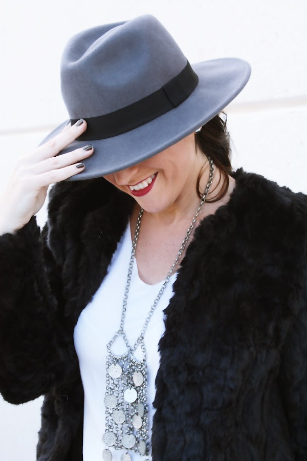 Comienzo el año con un look bajo mi sombrero, fiel a mi estilo, en un outfits en tres tonos básicos, blanco, negro y gris. La composición de estos colores entre sí me encanta y sin duda la armonía entre ellos es perfecta.