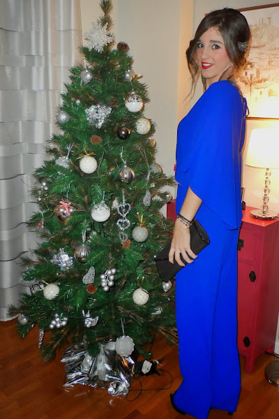 Olga, por otra parte, elige mono largo azul Klein. La manga ancha y el escote trasero lo hacen elegante y especial. Lo complementa con un estrecho cinturón joya, para darle el efecto ablusado, grandes pendientes plateados ante la ausencia de cualquier tipo de adorno en el escote y diadema a modo de tiara también en tonos plateados.