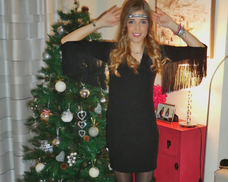 Marta opta por el clásico LBD (little black dress) combinado con collar de lágrimas y cinta tipo joya en el pelo. Lo más original del vestido son, sin duda, sus mangas de flecos. Además, en cuanto lo vio supo que no podía perder la ocasión para adornar el look con una cinta tipo charlestón-años 20. ¿Un truco para este tipo de de adornos? Un pelo con volumen evitará que quede un efecto de cara demasiado alargada.
