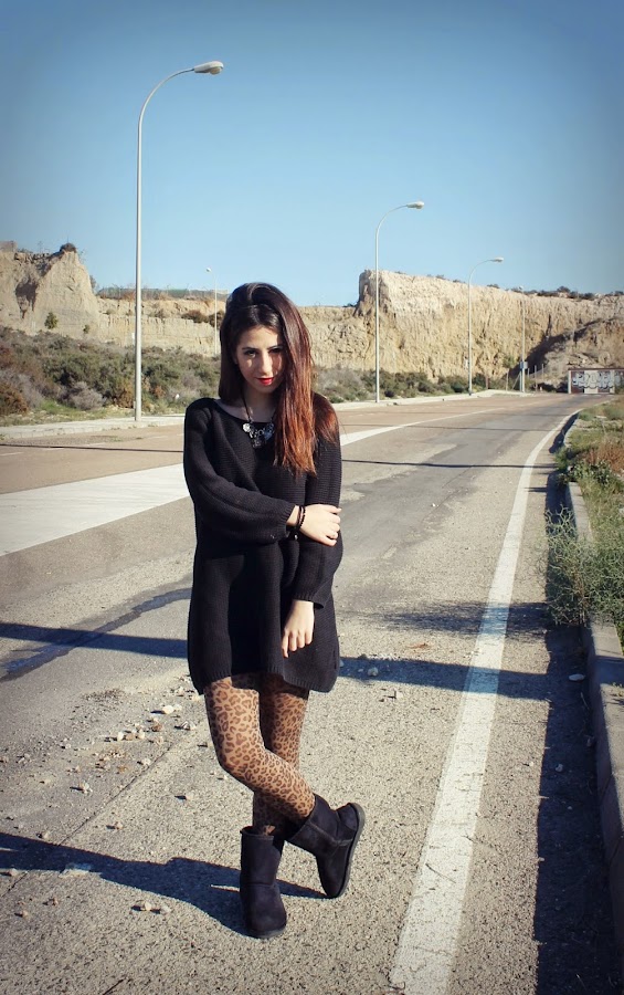 Hoy vengo con un outfit ideal para estas cenas familiares que se aproximan. ¿Qué os parece? He elegido un vestido negro de lana de h&m y le he dado un toque animal print con las medias. Las botas son de primark y me encantan porque son súper cómodas. Os dejo con las fotos, un besazo enorme y ¡¡felices fiestas!!