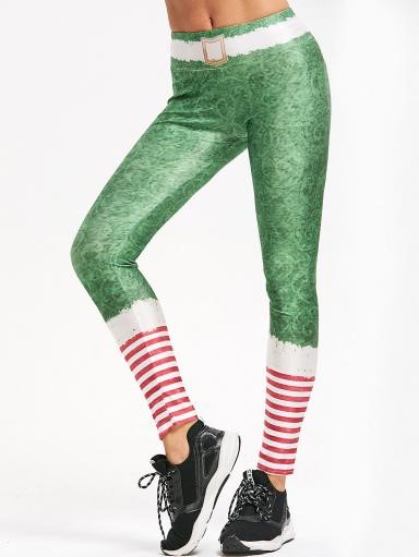 Striped Belt Print Christmas Leggings