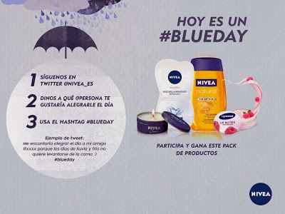 La promoción consistía (no sé si estará todavía) en publicar un tuit con el hashtag #blueday e indicar a quién le queremos alegrar el día y por qué. Hay que ser seguidor/a de Nivea en twitter @NIVEA_ES