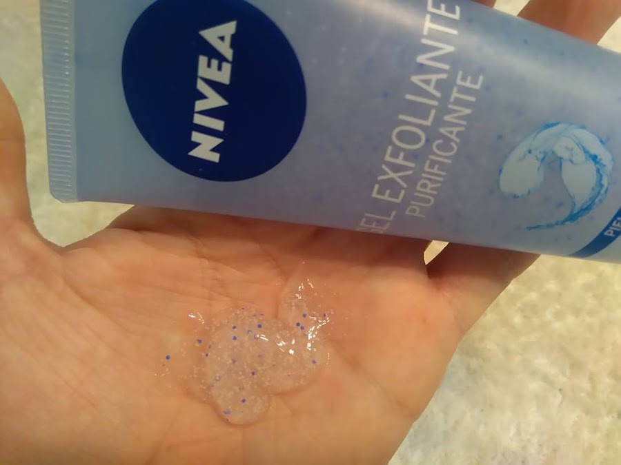 El gel en sí es de color transparente, tiene unos granulitos blancos super pequeños que no se notan nada y no se exactamente para que son, me da la sensación que eso es lo que hidrata y suaviza la piel. Tiene otros gránulos de color azul que aunque es pequeño (mayores que los blancos), se notan al frotar que es lo que a mi me gusta, muy suave con el rostro que para nada lo irrita. La cantidad de gránulo tampoco es muy grande pero es suficiente para hacer su efecto.