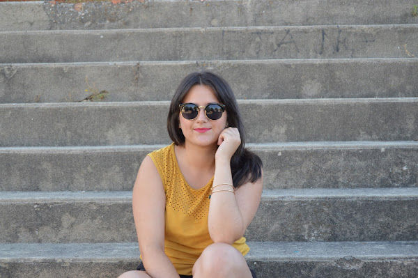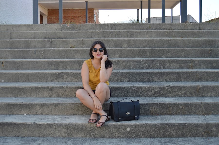 Bueno como os he dicho antes, quisimos tener un look con negro + un color. En mi caso fue el amarillo mostaza. No tenía ninguna prenda de este color hasta este verano, ¡y me ha encantado! Además esta prenda es preciosa porque es de antelina y es taaaaaaaaaaaan suave...