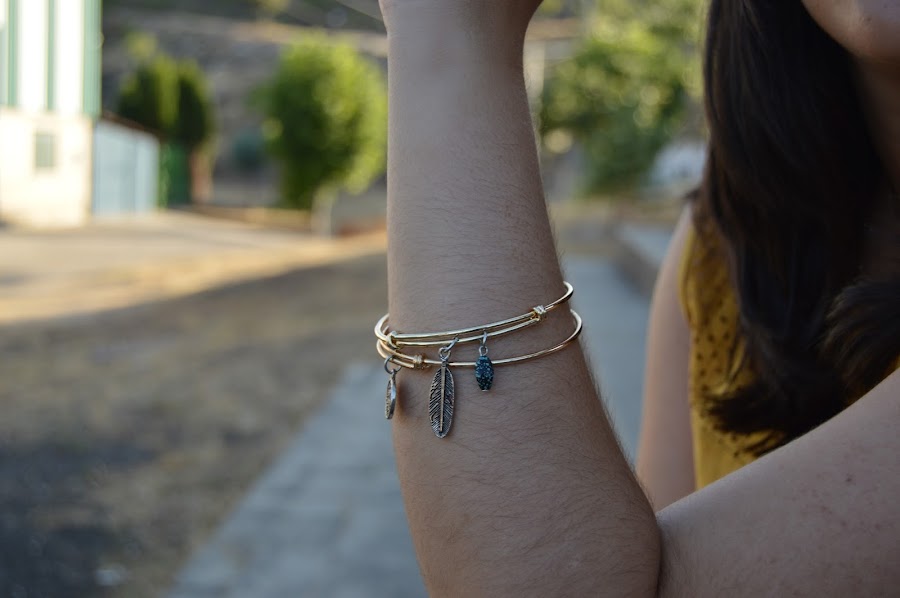 Para darle un poco de brillo elegí las pulseras rígidas que ya os he enseñado en otra ocasión.