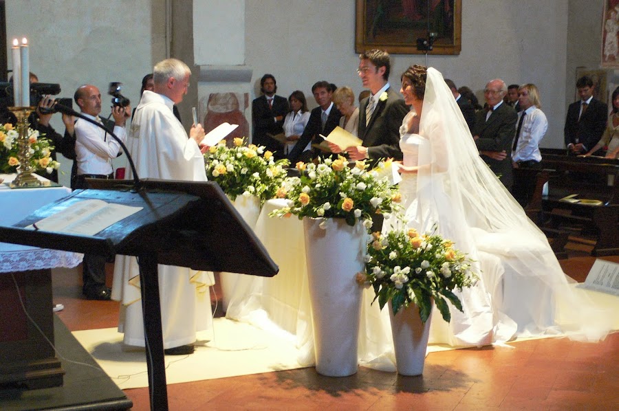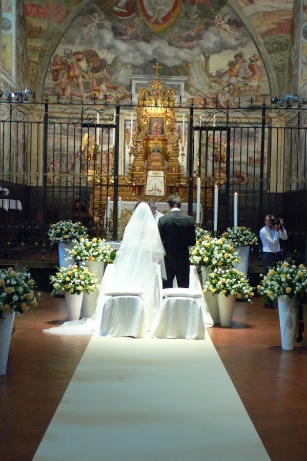 Elisabetta y Nicola se casaron en la parte alta de la ciudad de Bérgamo y el convite lo hicieron en un precioso claustro. Una boda en la que se degustaron deliciosos platos italianos, se bailó buena música y donde la novia terminó sin zapatos ;)