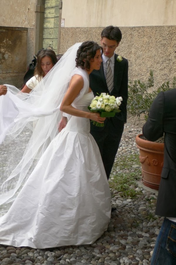 Para la boda, Elisabetta eligió un vestido de "Sopose di Giò", una firma de vestidos de novia muy conocida del norte de Italia. Para la ocasión, Nicola llevó un maravilloso traje de Versace con la misma corbata que lució su padre el día de su boda. Además, los invitados no se quedaron atrás, Chiara, hermana de la novia, lució un Red Valentino y Stefano, el testigo, un traje de Armani. Además, la madre del novio también optó por Armani, y la cuñada de la novia un Dolcce & Gabanna. Como veis, todo firmas muy italianas...