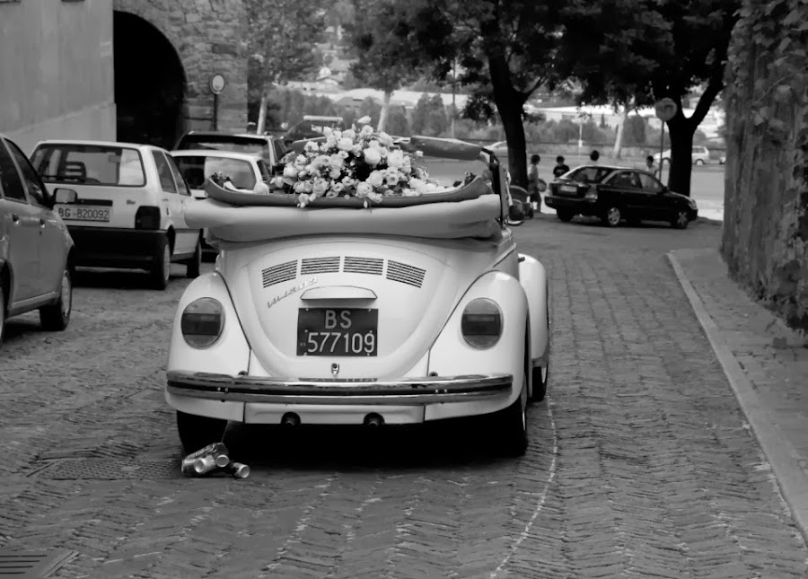 Para la ocasión, Elisabetta quiso que el coche nupcial fuera un escarabajo blanco descapotable, su coche favorito...