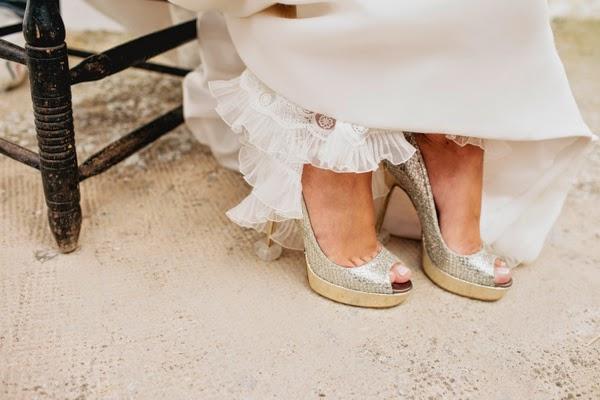 Para el día B, Rosa eligió un vestido de Jorge Vázquez, un vestido de corte a la cintura, de escote cuadrado y pico en la espalda, muy clásico y elegante. Me ha sorprendido que Rosa entró a la Iglesia con velo que le caía por delante (hacía mucho que no veía una novia así). Complementó su vestido con unos impresionantes zapatos Jimmy Choo. Para el maquillaje y la peluquería confió en Javier Montenegro y Fernando, respectivamente. Rosa llevó un bouquet muy colorido de María Salazar quien también se encargó de la decoración floral de la boda.