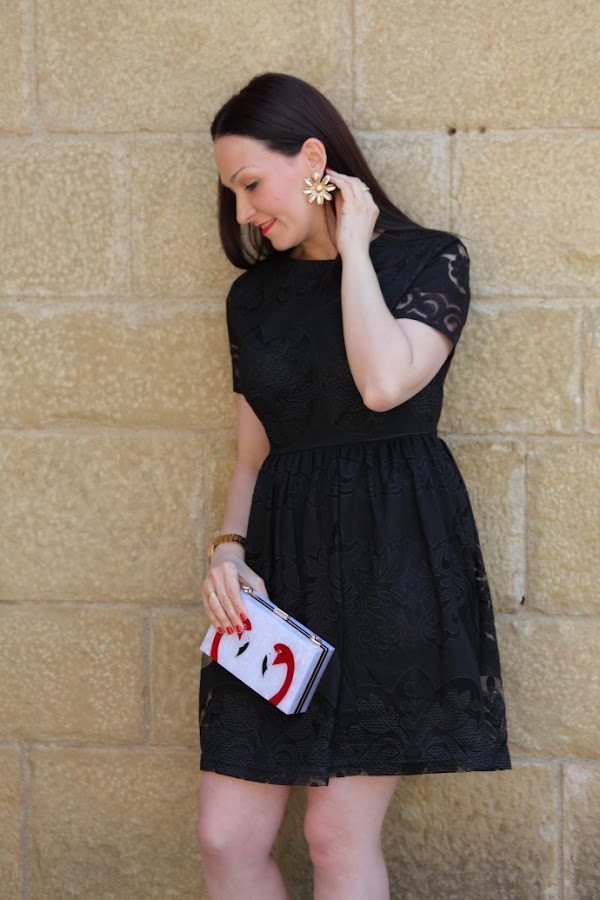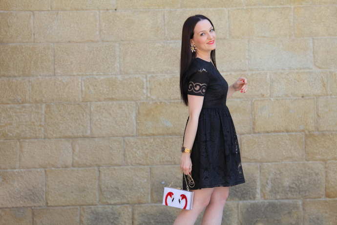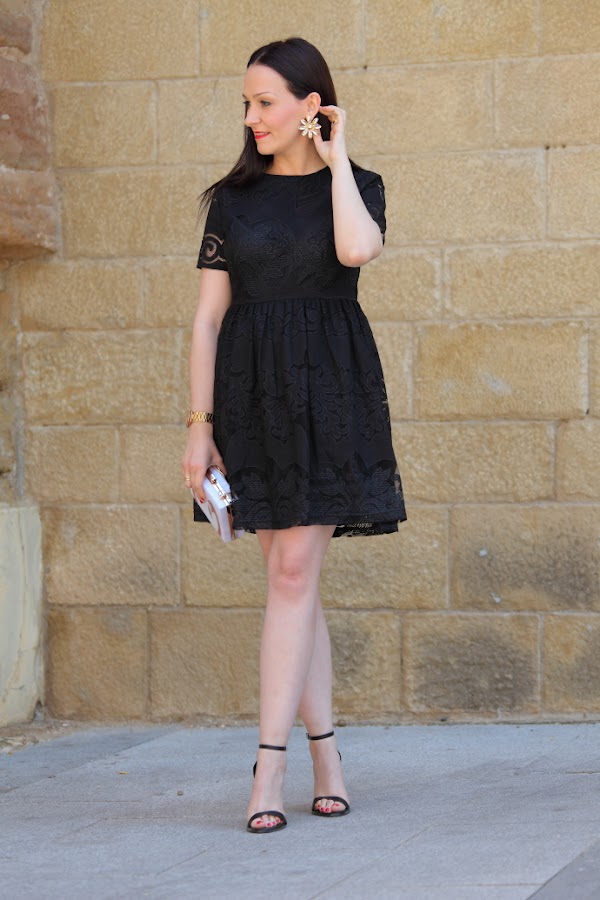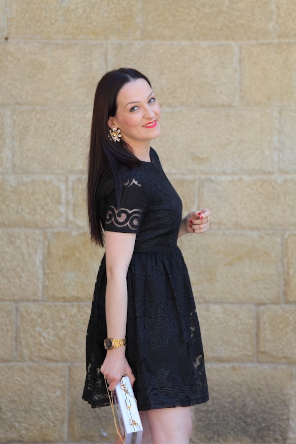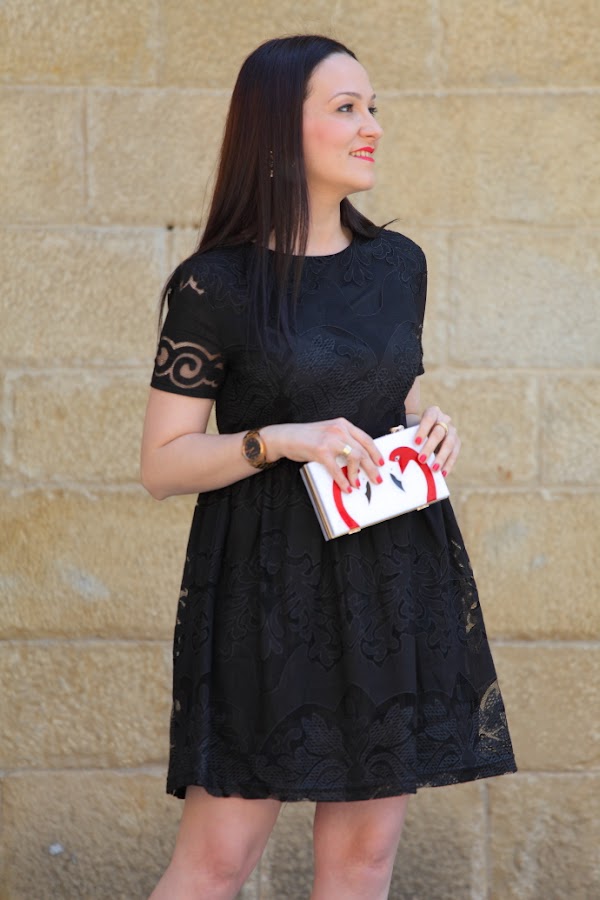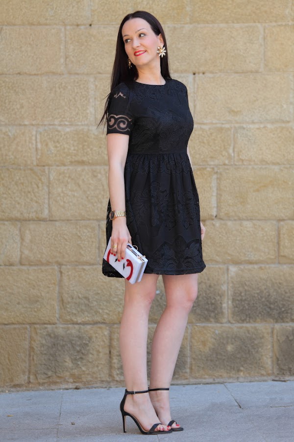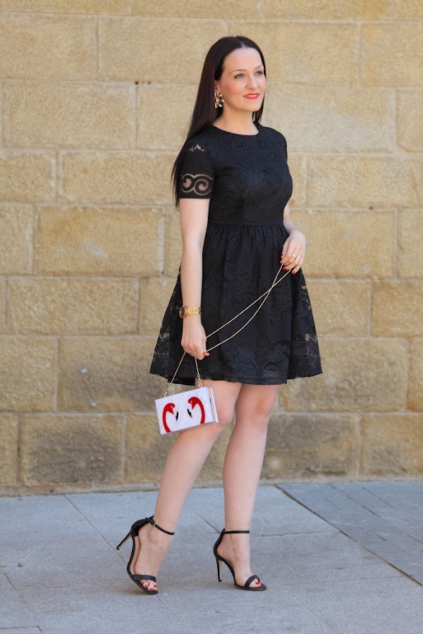 La semana pasada os comentaba en este post que a partir de ese look de fiesta os iba a enseñar algunos más para daros ideas para vuestros próximos eventos. Así que hoy os enseño el look que llevé hace quince días para acudir a la comunión de mis primos. Dado aquella semana estuvo lloviendo bastante dude hasta el último momento en qué ponerme, pero por suerte el sábado amaneció con un solazo increíble. Como fan que soy del negro, opté por un little black dress al que le añadí un maravilloso clutch de flamencos que aportaban el toque de color, maxi pendientes dorados con forma de flor y sandalias atadas al tobillo.