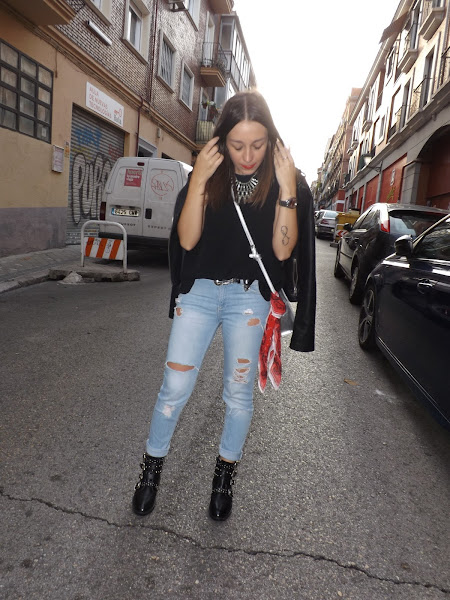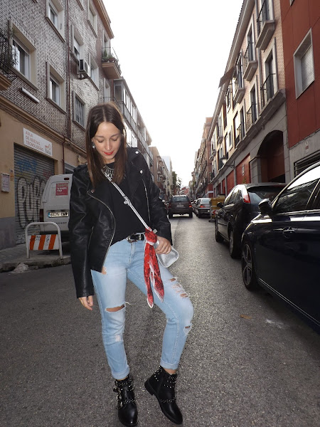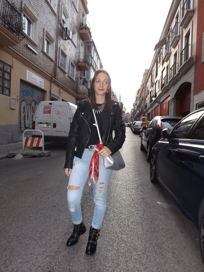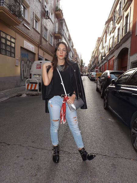 Y bueno, vamos con el look de hoy. El pasado mes fuimos de concierto y este fue el look elegido: unos jeans claritos combinados con negro para crear un estilismo cómodo y con un toque rockero gracias a los complementos.