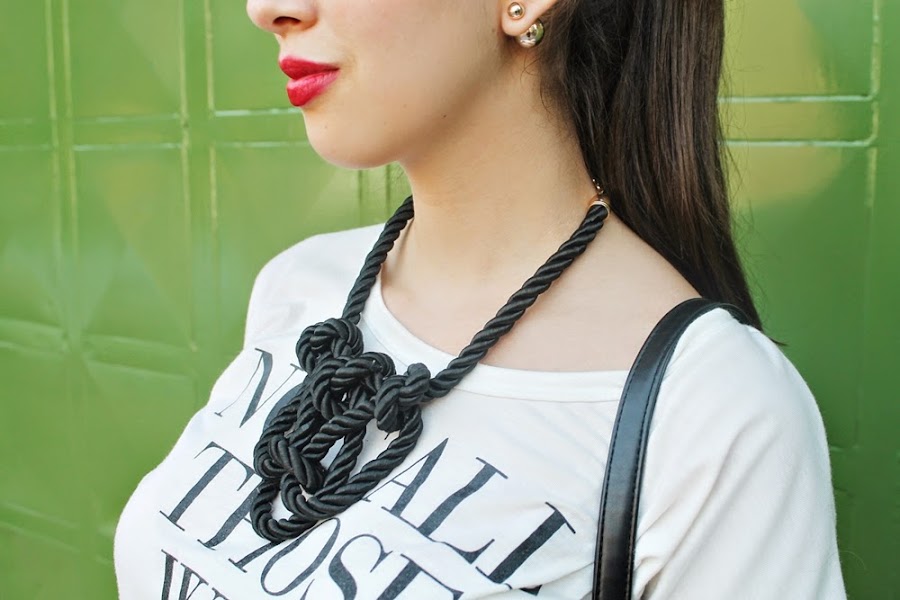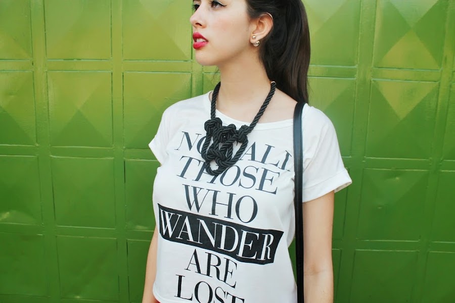 Los skorts son de mis piezas favoritas por su comodidad, este es de Aleli Moda y ya me lo han visto en el blog de una manera mucho más elegante -AQUÍ- y lo he usado mil veces, este día lo quise combinar con una franela con mensaje que están muy de moda de Saints, collar de nudos de Baya, Doble perlas de LuJo Accesorios y complementos en negro.
