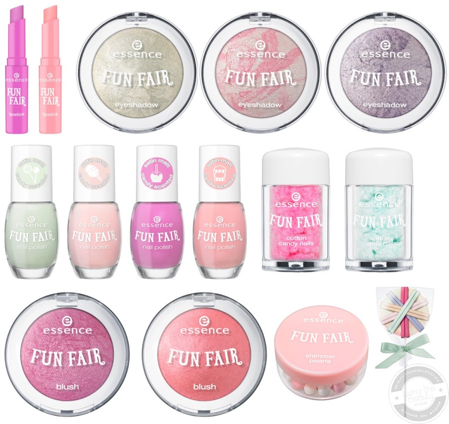LLega el buen tiempo y con el las ferias, las vacaciones, las risas... Creo que es lo que ha intentado representar en esta colección la marca Essence, el buen rollo que nos da la época estival ¿no creéis? La colección está compuesta por unas perlas iluminadoras, dos coloretes, tres sombras de ojos, cuatro esmaltes de uñas, dos "top coat" con acabado algodón de azúcar (muy curioso), dos labiales y una piruleta llena de gomas del pelo.