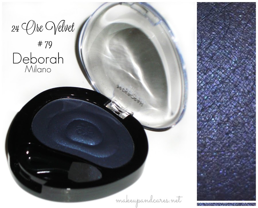 La sombra mono 24 Ore Velvet 79 contiene 5g, una caducidad aproximada de 12M y un aplicador de esponja, es la clásica sombra suelta de la marca, con un forma redondeado y una textura en relieve . Se puede trabajar tanto en seco como en húmedo y la pigmentación es bastante buena. Os dejo un swatche de este tono, un azul bastante potente, ideal para maquillajes de noche.