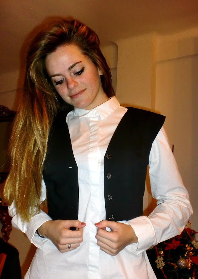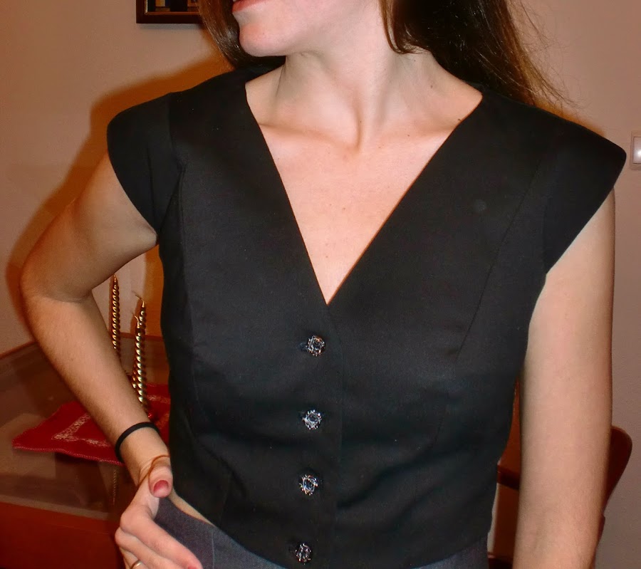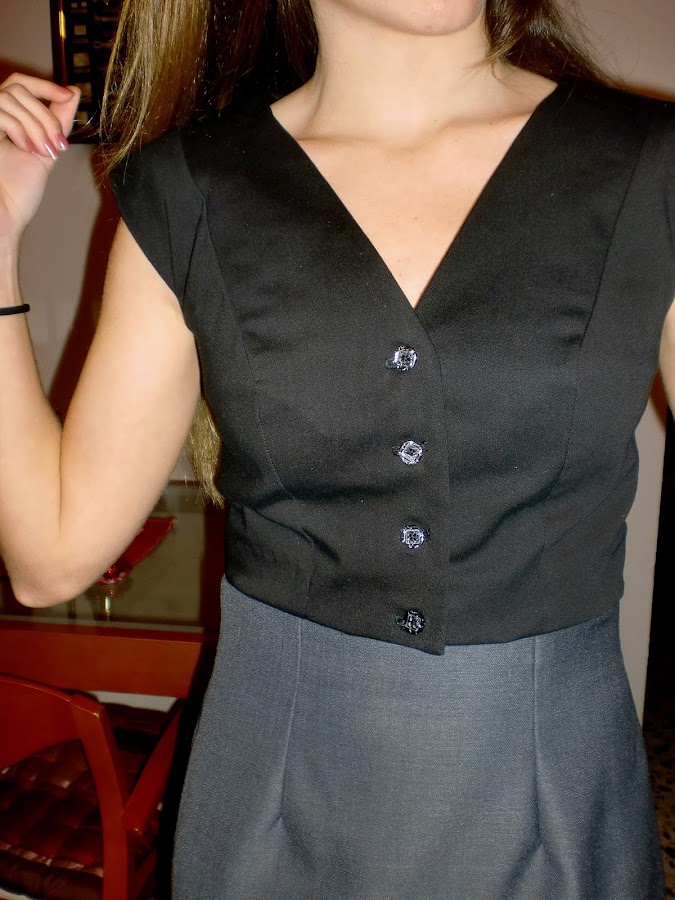 Este top, el cual podemos usar de torera o chaleco, es un diseño sencillo y elegante, con escote en pico y una original botonadura. Lleva un corte francés en el delantero, lo cual hace que luzca más elegante.