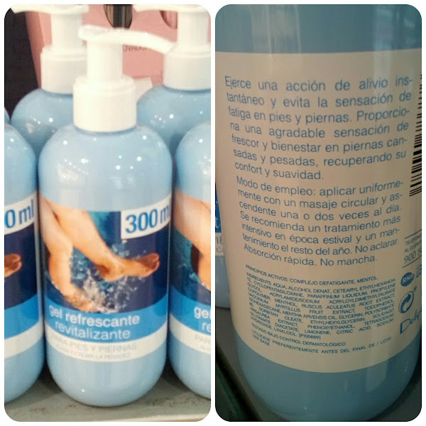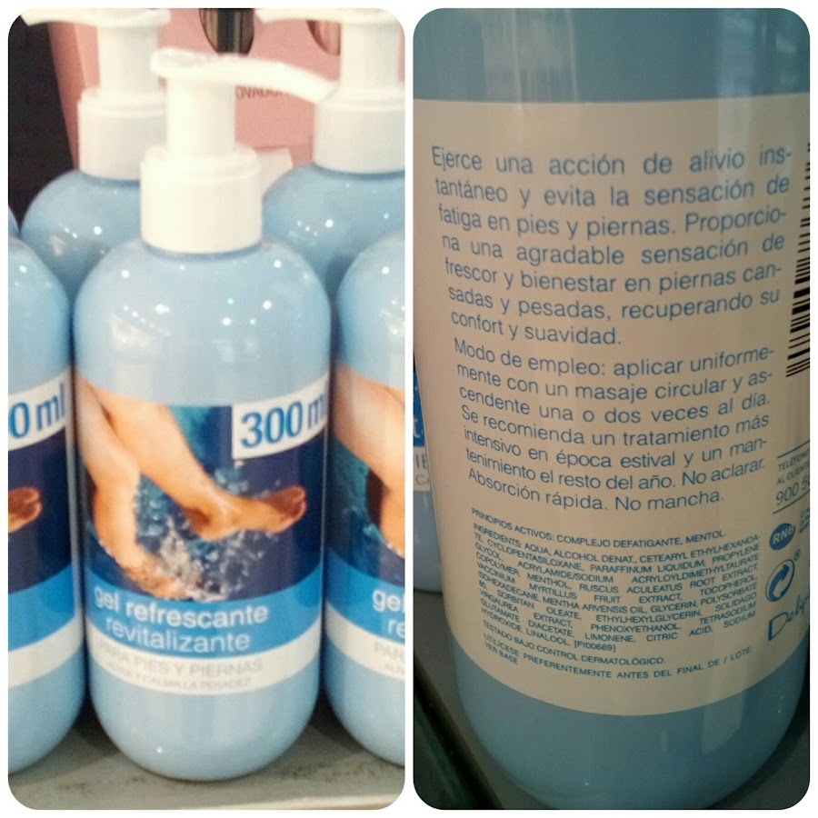Gel refrescante revitalizante para pies y piernas, Deliplús: el antiguo formato de este gel era en envase boca abajo como podéis ver en la imagen izquierda y ahora su nueva versión es más acertada por ser en botella y con dosificador (imagen derecha)