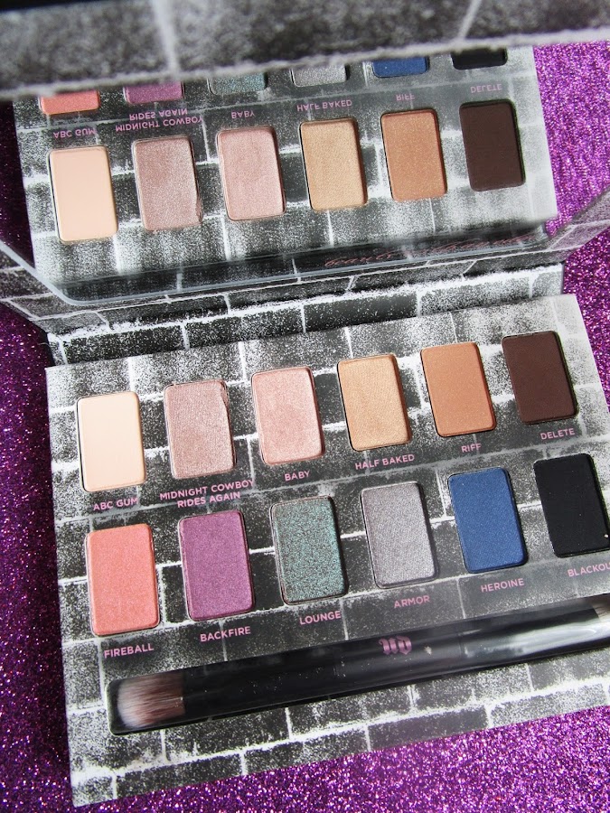 La calidad de las sombras es, como siempre, de diez...pigmentadas, sedosas y nada polvorientas. Con alguna hay que tener cuidado, porque es casi casi pigmento prensado...Baby es un ejemplo. La tornasolada fireball también es preciosa y combinada con Backfire son amor. ABC Gum, Delete o Blackout son imprescindibles. Midnight Cowboy rides again viste el ojo por sí sola y Half Baked, Armor y Heroine no son tonos a los que haga ascos, por lo que tengo que decir que esta paleta es de las que más voy a usar, estoy segurísima.