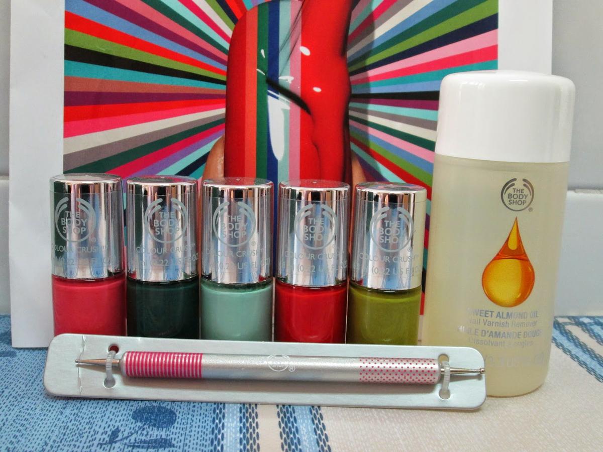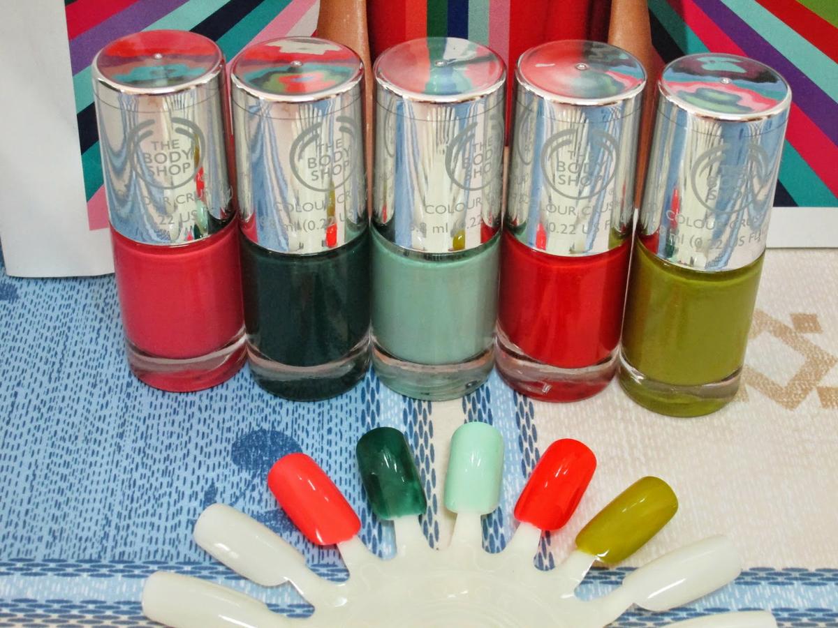 Los tonos (de izda a dcha) son: 330 Rosy Cheeks, 510 The Body Shop Garden, 640 Mint Cream, 130 Red My Mind y 520 Hemp Over Heels.