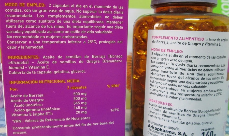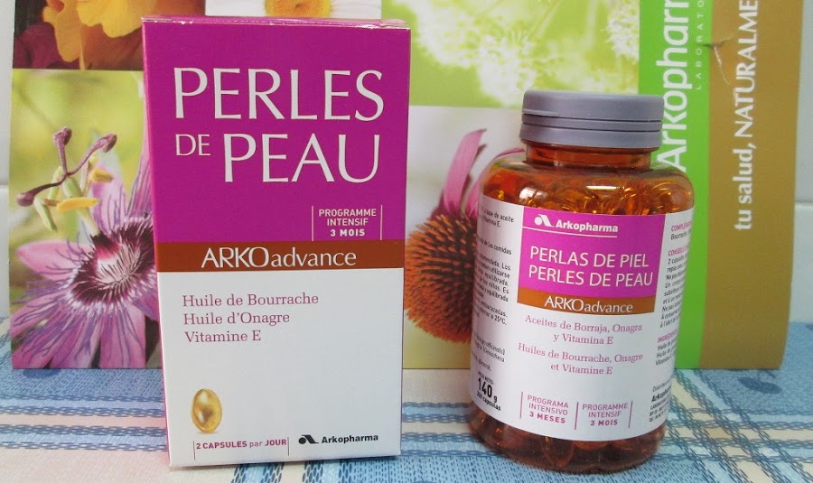 También, "Arkopharma", nos presenta estas perlas para la piel, que, como os he comentado anteriormente, tienen la función de cuidar y nutrirla desde el interior. Ellas están enriquecidas de: