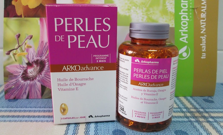 También, "Arkopharma", nos presenta estas perlas para la piel, que, como os he comentado anteriormente, tienen la función de cuidar y nutrirla desde el interior. Ellas están enriquecidas de: