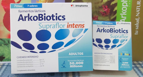 Es así, que nos presenta estas dos variedades: "ArkoBiotics Supraflor Intens", es un complemento alimenticio a base de 4 fermentos lácticos vivos y selenio. Hay que tomar un sobre al día, preferiblemente, por la mañana, diluido en un vaso de agua, leche o mezclado con un yogurt. El envase contiene 7 sobres a un precio, aproximado, de 15,20€. También, nos presenta "ArkoBiotics Supraflor", ideal para niños a partir de 3 años. Para ello, deben de tomar un sobre al día disuelto en un gran vaso de agua con las comidas (preferiblemente en el desayuno). Al igual que el anterior, también contiene 7 sobres, pero a un precio, aproximado, de 12,20€.