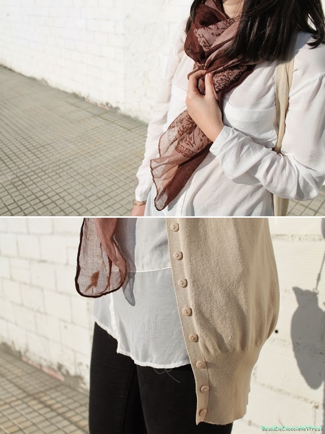 I also carry my new scarf that I received a couple of weeks of "The coat rack Candela" in which you can find scarves like this and other pretty things Super ago. He has brown and nude tones with printed deer.