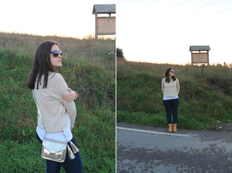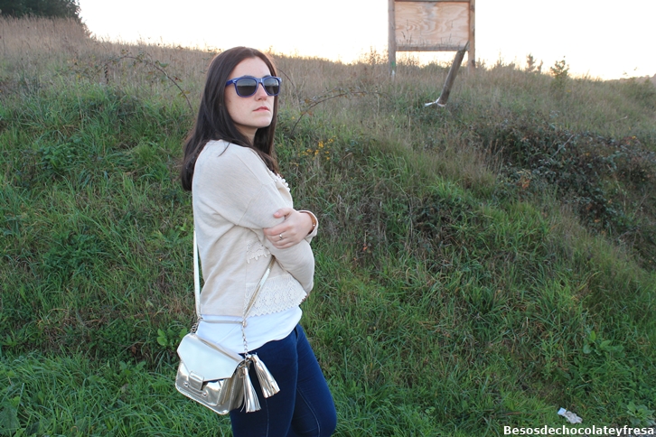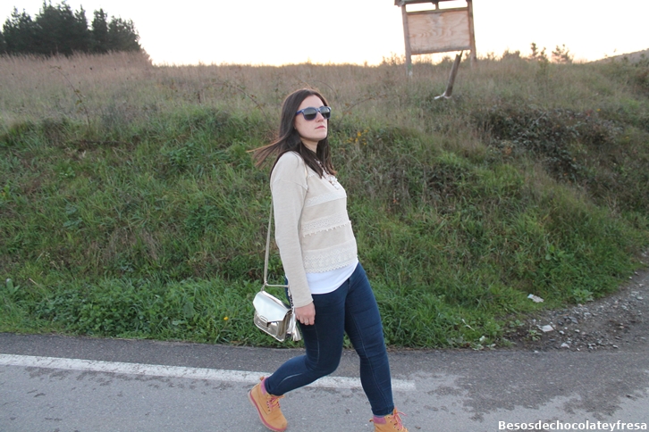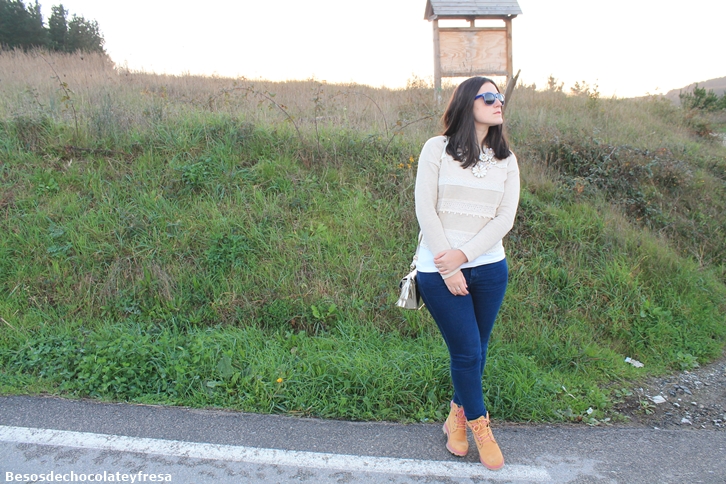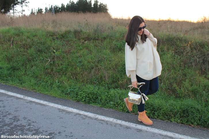 Today I bring you a look a few days ago when this was beginning to come chill that leaves you totally frozen. Take a look at nude tones with white poncho, sweater nude like the lei, jeans, boots Fat Company, super toasty with a touch of color in pink and gold purse.