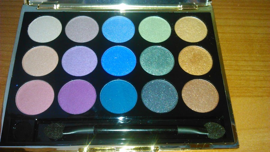 La paleta tiene el formato de un estuche de metal dorado, muy elegante. Contiene un espejo que ocupa toda la tapa y un aplicador doble de esponjitas. Cada sombra es de 1g y la paleta cuesta 9,86 euros.