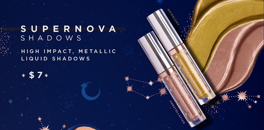 Supernova Shadows ($7.00dlls) sombras para ojos en formato liquido y larga duración, diseñadas para aplicarse por si sola, debajo o por encima de tu sombra de ojos para resaltarla. En la colección Zodiac existen dos tonos:
