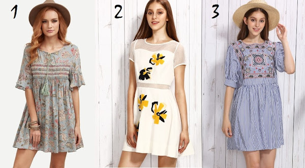 1- Vestido boho AQUÍ, 2- Vestido flores AQUÍ, 3- Vestido rayas AQUÍ
