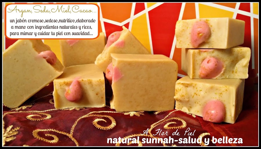 El jabón de ARGAN enriquecido con rica MIEL DE MIL FLORES de las montañas del Alto Atlas en Marruecos,SEDA natural y MANTECA DE CACAO,rico,sedoso y cremoso,es un producto natural y artesanal,preparado a mano con mucho mimo,formulado especialmente para hidratar,nutrir y cuidar la piel. PRECIO:3,50??? (mas info sobre el aqui: Jabon de Argan,Seda,Miel y Cacao )