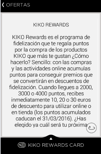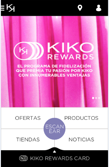 Como veis, hay 5 apartados: ofertas, que ahora os enseñaré; productos, en la que podemos estar enteradas de todos los productos disponibles en el momento; Tiendas, en la que podemos buscar nuestra tienda KIKO más cercana; Noticias, en la que podemos estar enteradas de todas las novedades de la marca; y, por último, ESCANEAR, que me parece súper útil, ya que podemos escanear el código de barras de cualquier producto KIKO y que nos dé toda la información que necesitamos. ¿No os parece muy útil?