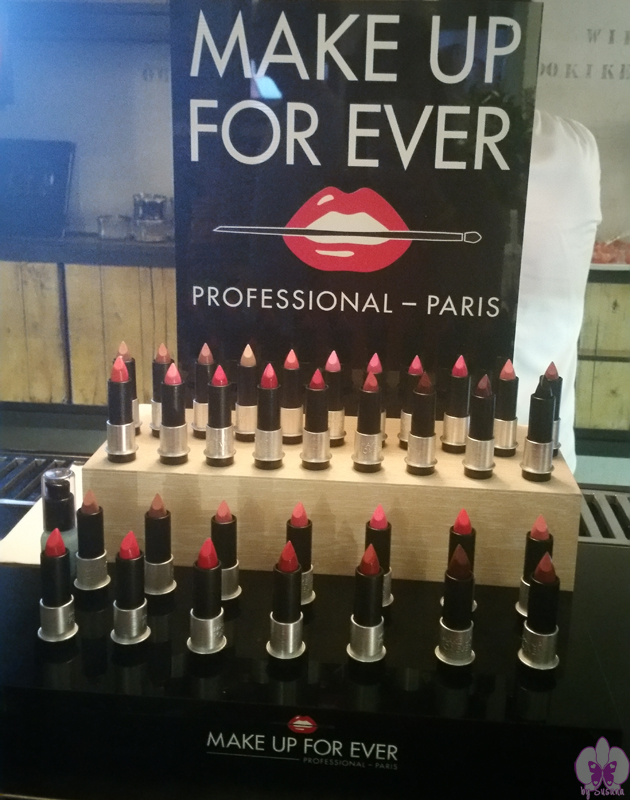 Como habéis visto en las fotos, el sitio estaba súper chulo con todos los nuevos labiales de Make Up Forever, en un montón de colores diferentes, algunos de ellos, súper atrevidos y diferentes. Durante el evento, había cosas ricas ricas para picotear y podías disfrutar de un maquillaje con los maquilladores de la marca y probar sus nuevos labiales en tus propios labios.