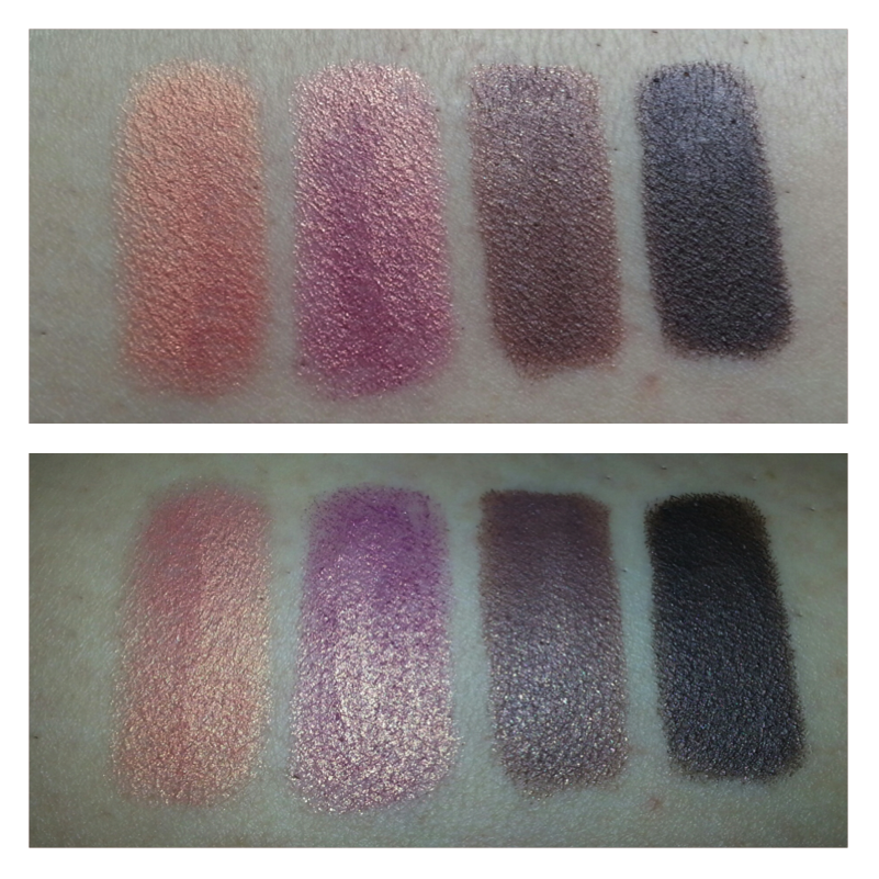 Os dejo fotos de los swatches, tanto sin flash (foto superior) como con flash (foto inferior).
