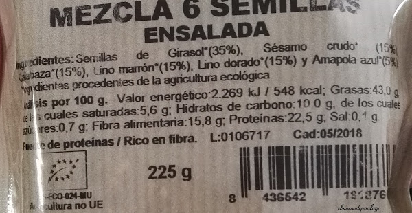 Me pase por un herbolario y vi esta mezcla de 6 semillas de la marca de Naturgreen y un punto positivo (en mi caso) que está libre de gluten, osea que mejor!